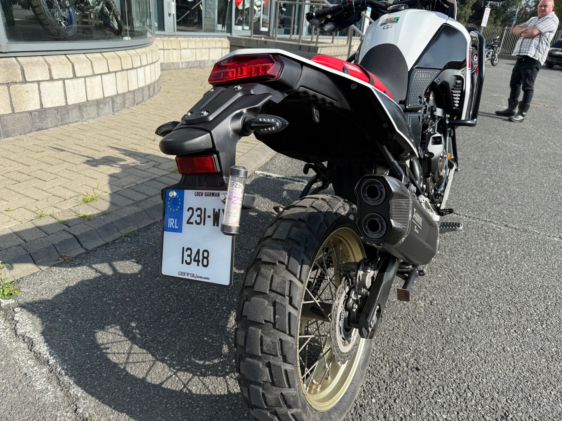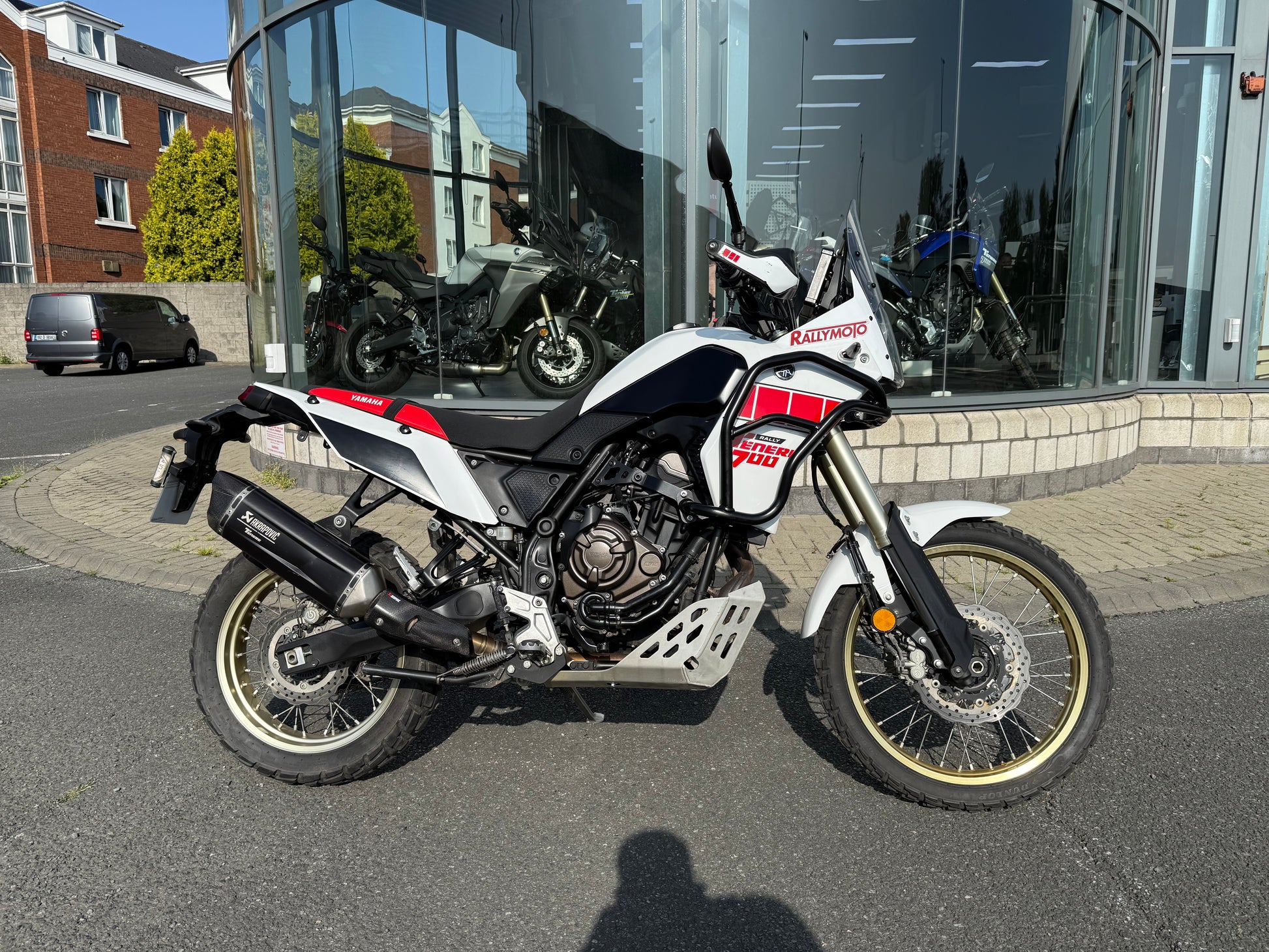 We have a lovely low-mileage 2023 Yamaha Tenere Rally for sale here at Danfay Newlands. We've given it a full service and check over from our mechanics in the workshop. It has the beautiful-sounding Akrapovic exhaust fitted and it’s ready to roll.