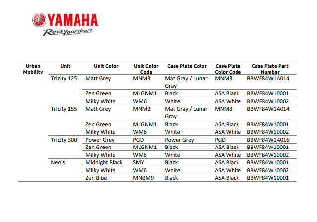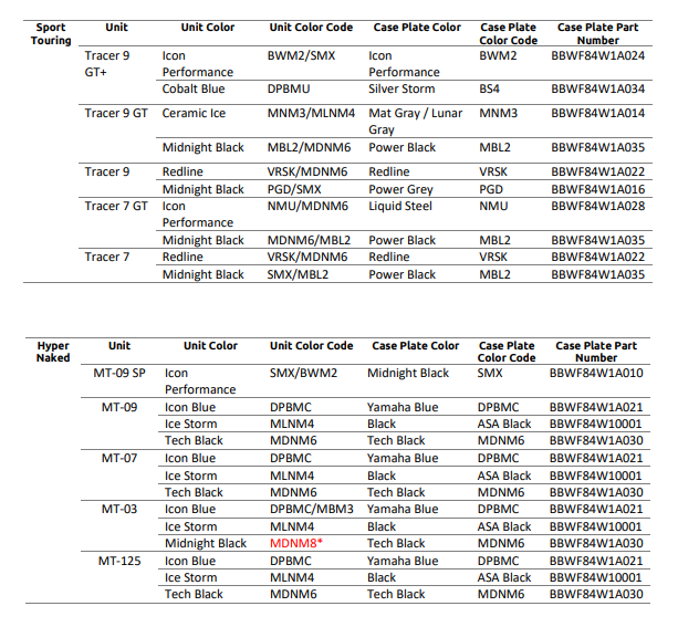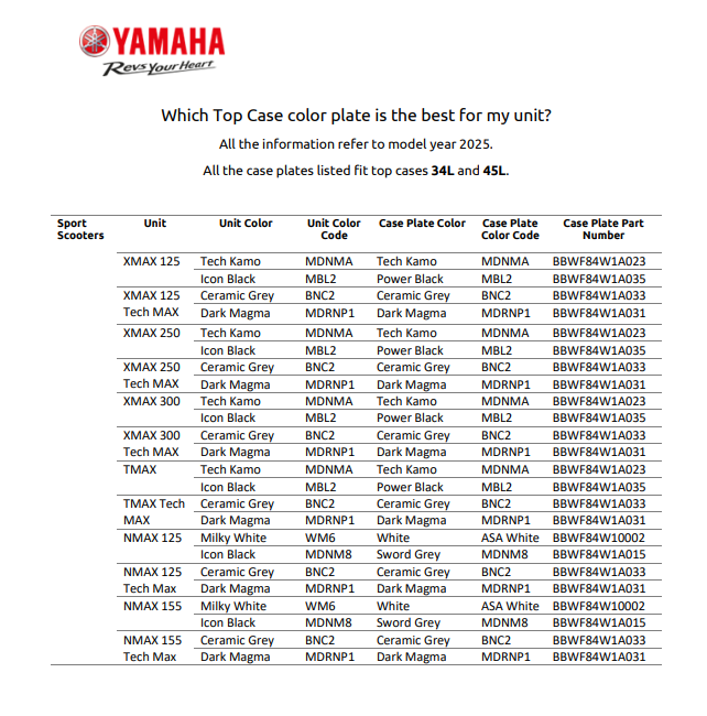 Range of coloured plastic plates for Yamaha's 45L & 34L top boxes.